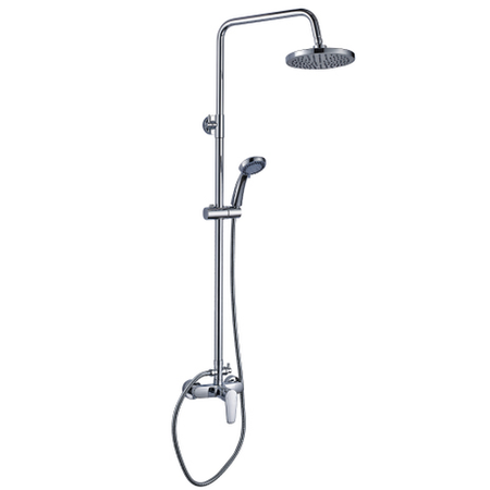Смеситель для душа с регулируемой высотой штанги и верхней душевой лейкой «Тропический дождь» Керамический картридж 35 мм • Переключатель с керамическими пластинами • Верхняя поворотная душевая лейка «Тропический дождь» Ø200 мм с функцией легкой очистки • Аксессуары в комплекте (шланг 1,5 м, 5-функциональная лейка с функцией легкой очистки, регулируемое по высоте крепление для лейки) • Присоединительная группа (эксцентрики с отражателями) для вертикального крепления • Металлическая рукоятка