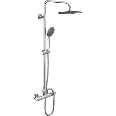 Душевая система в комплекте с термостатическим смесителем для душа; душевая лейка Ø120 мм 3-функциональная, ограничение потока 8 л/мин.; ультратонкий верхний душ Ø250 мм, ограничение потока 12 л/мин, нержавеющая сталь, шаровое соединение; душевая труба Ø25 мм для верхнего душа, ручное переключение, пластиковый слайдер, металлические крепления к стене; пластиковый шланг IdealFlex 1750 мм; смеситель для душа с двумя выходами, декоративные накладки для скрытого монтажа