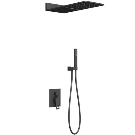 Верхний душ: тропический дождь. Длина кронштейна 60 см. Ультратонкий прямоугольный диск. Размер: 50.2 х 23 см.