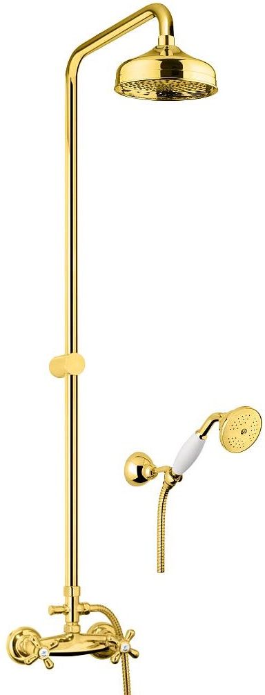 Главная » Строительство и ремонт Душевая система Webert Armony AM760405010 золото Просмотров 8 Способ монтажа: вертикальный Количество монтажных отверстий: 2 Верхний душ: 20 см Ручной душ: керамика Переключатель Шланг: 150 см Штанга: 114 см Держатель душа круглый Материал: латунь Цвет: золото Webert