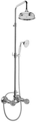 Описание:душевая система с круглым верхним душем, с двухвентильным смесителем без излива, с ручками, украшенными кристаллами Swarovski.