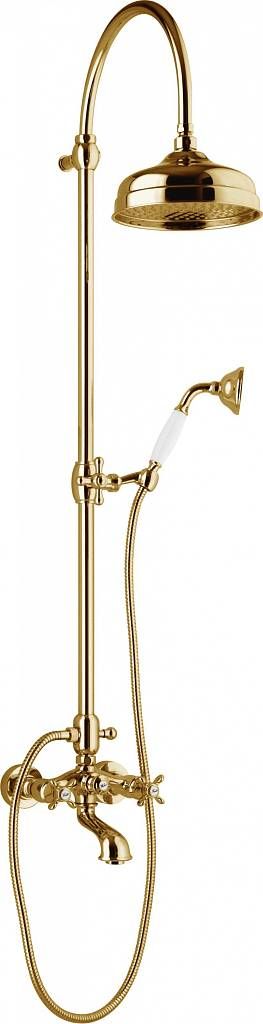 Описание:душевая система с круглым верхним душем, с ручным душем, штангой, шлангом, с двухвентильным смесителем с изливом.