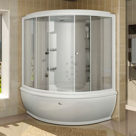 На смену традиционным ваннам в нашей стране потребитель все чаще выбирает душевые гидробоксы. Подобная сантехника отличается солидным функционалом, практичностью и компактностью. Представленный на сайте компании «Радомир» многофункциональный душевой бокс «Калифорния» порадует Вас обширными встроенными опциями, стильным дизайном и повышенными показателями долговечности. К тому же, этот элемент сантехники внесет нотки современности и роскоши в любое интерьерное оформление ванной комнаты. Данная модель выполнена в традиционном белоснежном цвете, оснащена ударопрочными стеклянными дверцами и имеет угловую компактную конструкцию овальной формы. За счет такой конструкции бокс способен разместиться в помещении достаточно компактно. При этом в одном изделии Вы получите и полноценную ванну, и душевую, и даже массажный комплекс. В этом и есть основное преимущество боксов перед обычными душевыми кабинками и ваннами. Перед сном для полного расслабления Вы сможете принять релаксационную ванну, успокаивающую и умиротворяющую тело и психику. Чтобы взбодриться и настроиться на предстоящий день, Вы можете воспользоваться гидромассажным душем. Компания «Радомир» гарантирует отменное качество своей продукции и предоставляет квалифицированное сервисное обслуживание своим покупателям. Чаша ванны, гидромассажный комплекс со сложной встроенной комплектацией, защитные стеклянные шторки — все элементы выполнены из высококачественных, надежных материалов. Кроме различных вариантов гидромассажа, в душевом боксе реализована функция "Пар". Она позволяет устроить у себя дома настоящую парную. Встроенный парогенератор преобразует воду в клубы пара и выводит их прямо внутрь гидробокса. Температура постепенно увеличивается, наполняя ограниченное пространство. В результате образуется горячая влажная среда, подобная турецкому хамаму. Парогенератор обеспечивает температуру 30°-35° С влажного пара внутри при условии, что температура окружающего воздуха не ниже 23°-24°С. Запрограммированное время работы парогенератора установлено длительностью 20 минут и оно не может быть изменено. Выключение парогенератора раньше этого времени возможно, а повторное включение возможно только по прошествии 20 минут с предыдущего включения парогенератора. Душевой бокс с парогенератором способствует улучшению здоровья, поддержанию молодости и красоты. После регулярных сеансов налаживается процесс кровообращения, ускоряется обмен веществ. С помощью горячего пара улучшается состояние кожи и активизируется коррекция веса. Преимущества душевого бокса Калифорния: Угловая конструкция бокса предполагает рациональную и функциональную установку Большое внутреннее пространство чаши позволяет погрузиться полностью в воду и насладиться принятием ванны Закалённое стекло толщиной 6 мм для вашей безопасности Нано-покрытие Radomir® ClearGlass против подтёков и разводов обеспечивает легкий уход за стеклами Крыша бокса с тропическим душем Плавно раздвижные двери обеспечивают удобный и широкий проход Удобные полочки в углу бокса обеспечивают функциональное хранение необходимых банных принадлежностей В углу ванны расположено удобное встроенное сиденье Бокс оснащен 12-тью форсунками горизонтального душа и 14-тью форсунками в чаше ванны, аэромассажем и хромо