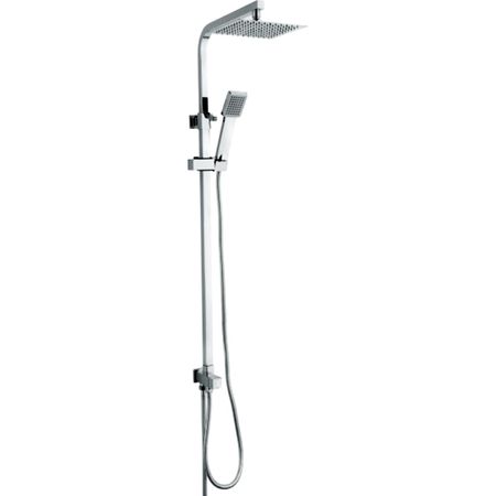Комплектация: душевая стойка, верхний душ, душевая лейка, душевой шланг, держатель для душевой лейки, настенный держатель, гибкая подводка