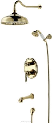 Душевой комплект Lemark Brava LM4722G идеально подойдет для оформления классической ванной комнаты либо интерьера в стиле ретро. Все изделия выполнены из латуни с износостойким покрытием, защищающим его от повреждений и гарантирующим долгий срок эксплуатации. Верхний поворотный душ снабжен режимом «Тропический дождь». Смеситель комплектуется экокартриджем, позволяющим экономично расходовать воду. Управление напором и температурой воды осуществляется удобным рычагом. Встраиваемый наполнитель для ванны укомплектован аэратором, насыщающим воду кислородом и делающим поток объемным и мягким. Ручной душ работает в одном режиме подачи воды и фиксируется к стене при помощи поворотного крепления. Душевой шланг 2 м.