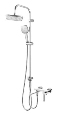 В комплекте: однозахватный смеситель для ванны с поворотным изливом; верхний душ с системой самоочистки, ручной душ с режимом самоочистки, регулируемый по высоте и наклону держатель, душевой шланг, керамический дивертор. Штанга с возможностью установки в старые отверстия, цвет: хром