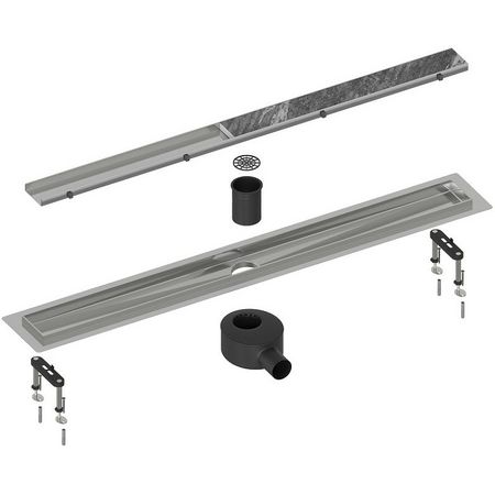 Душевой канал изготовлен из нержавеющей стали, отличающейся большой прочностью и долгой службой. Изделие отлично фиксируется в бетонную стяжку и устойчиво к воздействию агрессивных сред. Самоочищающийся сифон обеспечивает эффективную пропускную способность: 0,7 л/сек при уровне воды 10 мм над решеткой, и 0,8 л/сек — при 20 мм. Уровень гидрозатвора — 25 мм. Сухой затвор гарантирует максимальную защиту от неприятных запахов. Особая конструкция дренажного канала позволяет использование ручного инструмента для прочистки отводной трубы. Дизайн решетки создает эстетичный эффект, а на двухстороннюю декоративную панель можно наклеить вашу плитку. Сталь с глянцевой поверхностью гармонично вписывается в пространство пола.