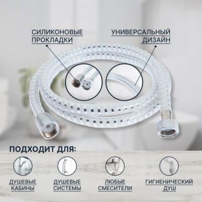 Душевой шланг ZEIN Z02PW, 150 см, с пластиковой конусообразной гайкой, ПВХ, белый, Имп/Имп. Душевой шланг изготовлен из эластичного поливинилхлорида (ПВХ). Длина 1,5 м рассчитана с учетом максимального удобства для пользователя. Устойчив к изменениям температуры рабочей среды и не поддается воздействию коррозии. Шланг не теряет гибкости, прочный на разрыв. <b> Преимущества</b> <li> Универсальное соединение, совместимое с большинством смесителей и душевых леек.</li> <li> Шланг не перекручивается во время использования.</li> <li> Подходит для ухода и ополаскивания ванн длинной до 150 см.</li>