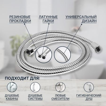 Душевой шланг zein z17ps, 150 см, гайки металл 1/2