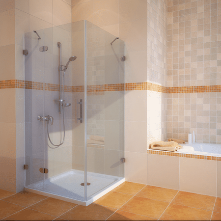 Душевое ограждение квадратное с открыванием двери наружу и подъемно-опускным механизмом.