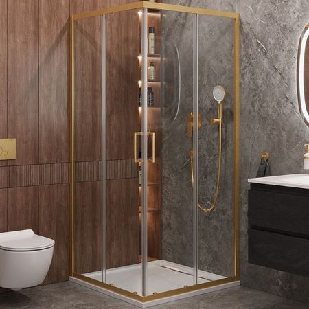 Душевой уголок Cezares Molveno 90×90 MOLVENO-A-2-90-C-BORO-IV профиль Брашированное золото стекло прозрачное