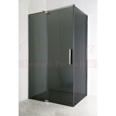 Душевая шторка квадратной формы без поддона. Рама из полированного алюминия. Ударопрочное тонированное стекло толщиной 8 мм. Распашная дверь. Магнитный уплотнитель. Устойчивость к сколам и другим механическим повреждениям