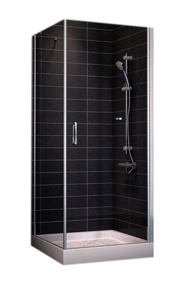 Душевой уголок, прямоугольный, с одностворчатой распашной дверью и боковой неподвижной перегородкой, без поддона.