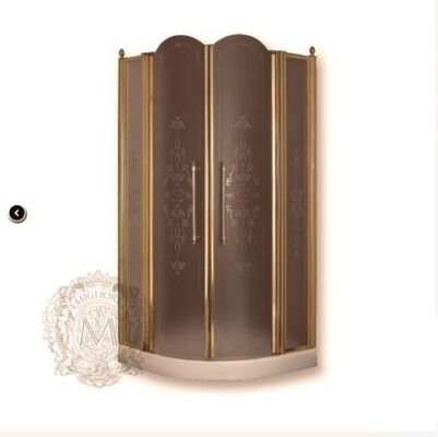 Душевые уголки и двери коллекцииDiademaвыполнены из прозрачного закаленного травмобезопасного стекла с декоративным рисунком и арматурой с цветом покрытия бронза/золото.