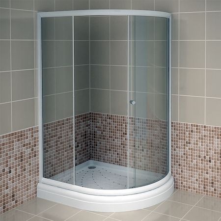 Душевой угол радиальной формы имеет привлекательный внешний вид и компактные размеры. Обилие стекла делает модель легкой и невесомой, а окружающее пространство – цельным, стильным и просторным. В дополнение в душевому углу можно приобрести стульчик для водных процедур, поворотное зеркало и душевую стойку.
