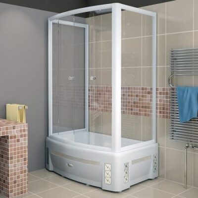 Алюминиевый профиль модели имеет классическое белое покрытие. Кабинка открывается с помощью двух раздвижных дверей с удобными ручками. Дверцы перемещаются по направляющим тихо и мягко. Вся фурнитура отличается исключительным качеством и долговечностью.