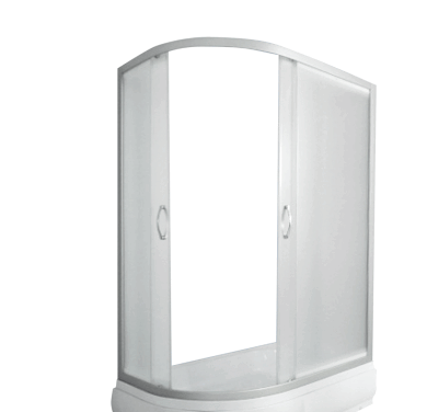 Душевое ограждение для ванной комнаты полукруглое с боковым регулировочным профилем и саморегулирующимися металическами, хромированными, двойными   роликами.