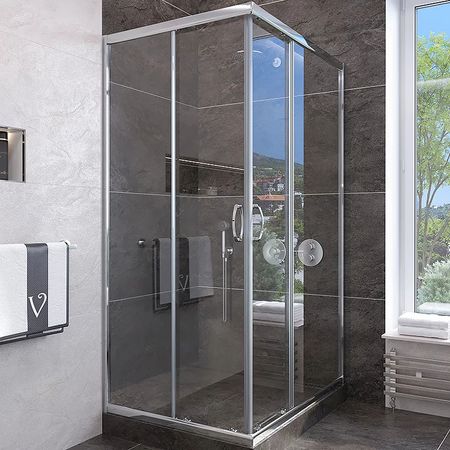 Душевой уголок Veconi Rovigo RV-113 90×90 RV113-90-01-C4 с двумя раздвижными дверьми и универсальной ориентацией.