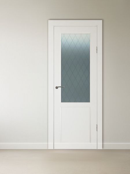 Дверь межкомнатная комплект «М-2.1/08», со стеклом ромб, 2000×900 мм, цвет белая шагрень