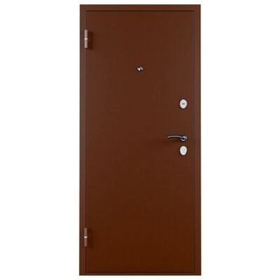Титан мет/мет левое открывание Размер: 2050х860х66 мм Цвет: медь антик Материал: сталь 1 мм В комплекте: глазок, ручка, задвижка, 2 замка 4го класса Дверь предназначена для установки в жилых и общественных зданиях в качестве входной двери внутри помещения.