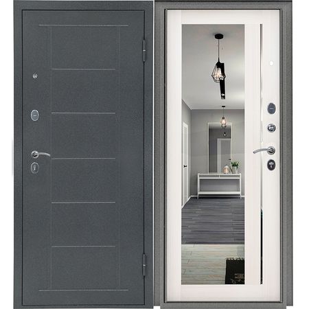 Главная » Строительство и ремонт дверь входная Титан зеркало 2050х860х75мм левая металл, МДФ Просмотров 7 Титан Зеркало правое открывание Размер: 2050х860х75мм Цвет: Букле графит, беленый дуб Материал: сталь 1 мм, МДФ 16мм с зеркалом В комплекте: Замок сувальдный, замок цилиндровый, ручка, накладка, эксцентрик, ночная задвижка. PROMET