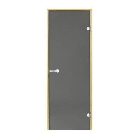 Дверь HARVIA (Харвия) 7/19 коробка сосна, серая D71902M следует поставить в дверной проем парилки, чтобы обеспечить необходимый уровень комфорта при пользовании. Закаленное стеклянное полотно серого цвета надежно закреплено в коробки из сосны. В дополнение между коробкой и стеклом находится уплотнитель, что создает, таким образом герметичность.