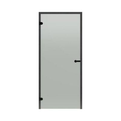 Дверь HARVIA (Харвия) 8/19 Black Line коробка сосна, сатин D81905BL содержит коробку из сосны, окрашенную в черный цвет. В коробку устанавливается толстое стеклянное полотно, прошедшее специальную закалку и выдерживающее температуры бани или сауны. Через сатиновое стекло свет проникает в помещение, но при этом через него ничего не видно.