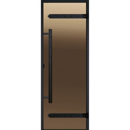 HARVIA (Харвиа) LEGEND 7/19 черная коробка алюминий, стекло бронза DA71901L эксклюзивная дверь в хамам, отличается эффектным внешним видом и качественным исполнением. Выполнена из прочного закалённого стекла бронзового оттенка, роскошь которого подчёркнута алюминиевой рамкой и металлической фурнитурой чёрного цвета, что делает общий дизайн просто потрясающим.