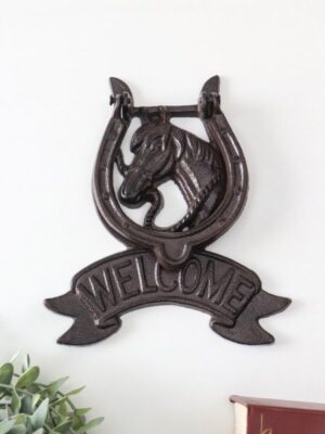 Главная » Строительство и ремонт Дверной молоток чугун Просмотров 13 Дверной молоток чугун "Конь в подкове — Welcome" 18х2х21 см. No brand