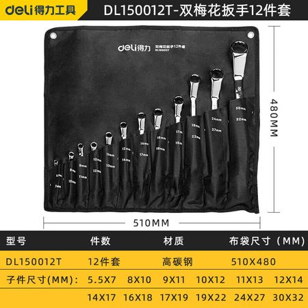 Двойной ключ Torx Deli, двусторонний ключ, доска, инструменты для авторемонта, набор из 12 предметов, 5,5-32 мм, DL150012T