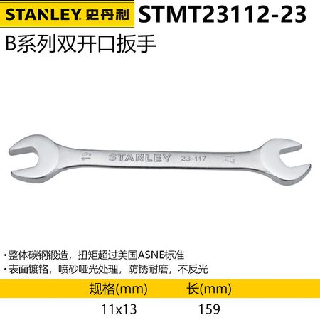 Двойной рожковый ключ Stanley из углеродистой стали серии B, двусторонний ключ двойного назначения, метрический, 11×13 ммSTMT23112-23