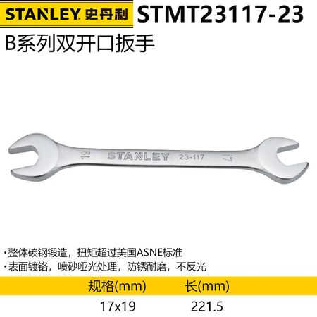 Двойной рожковый ключ Stanley из углеродистой стали серии B, двусторонний ключ двойного назначения, метрический, 17×19 ммSTMT23117-23