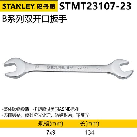Двойной рожковый ключ Stanley из углеродистой стали серии B, двусторонний ключ двойного назначения, метрический, 7×9 ммSTMT23107-23