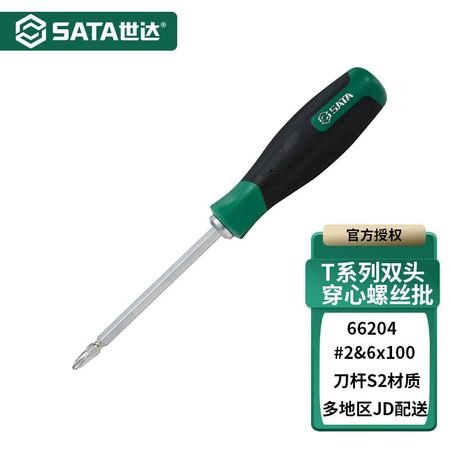 Двусторонняя отвертка серии SATA T № 2 и 6×100 мм, крестообразная отвертка двойного назначения, инструмент 66204