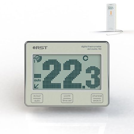 Фасадный электронный термометр RST 02780 это современный компактный прибор, позволяющий контролировать состояние воздуха внутри помещения и вне его, или только в одном из выбранных мест, для чего определяются соответствующие настройки. Использование радиодатчика предоставляет возможность устанавливать базовый прибор в глубине комнаты, не связывая его с уличным сенсором проводами. Домашний термометр RST 02780 должен быть у каждого.