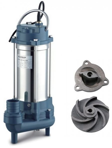 Отрытое центробежное рабочее колесо на удлиненном валу мотора увеличивает свободный проход через насос для инородных механических загрязнений.