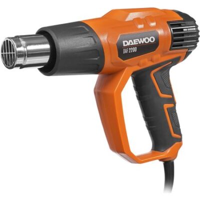 Фен технический Daewoo DAF 2200 для выполнения работ по горячей посадке, изгибанию пластиковых труб, оттаиванию промерзших труб, размягчению клея, снятию краски и удалению лакокрасочного покрытия. Электроинструмент способен работать в трех режимах. Также предусмотрена плавная регулировка температуры: 6 положений с шагом +10 °С. Двигатель охлаждается через отверстия увеличенного диаметра. Для продолжительной работы без дискомфорта для рук и усталости устройство оснащено удобной рукояткой.