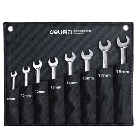 Гаечный ключ двойного назначения с трещоткой Deli, набор из 8 предметов, рожковый ключ двойного назначения с цветком сливы DL140008T