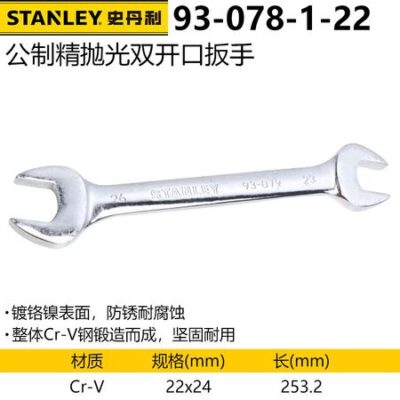 Гаечный ключ Stanley, хром-ванадиевая сталь, полированный, двусторонний, метрический, 22×24 мм, ключ двойного назначения 93-078-1-22 один