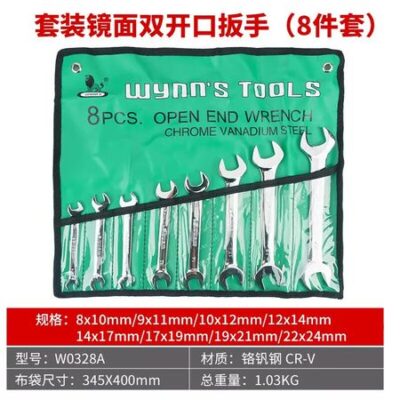 Гаечный ключ Wynns с открытым зевом, универсальный гаечный ключ, гаечный ключ из хромованадиевой стали, зеркально полированный, гаечный ключ для авторемонта, набор из 8 предметов, 8 ~ 24 мм