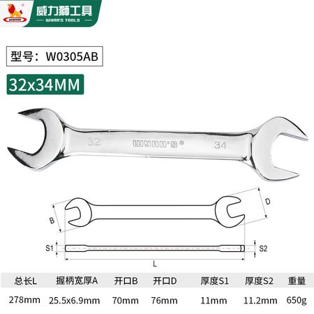 Гаечный ключ Wynns с открытым зевом, универсальный гаечный ключ, гаечный ключ из хромованадиевой стали, зеркально полированный, гаечный ключ для ремонта автомобилей, инструмент 32*34 мм