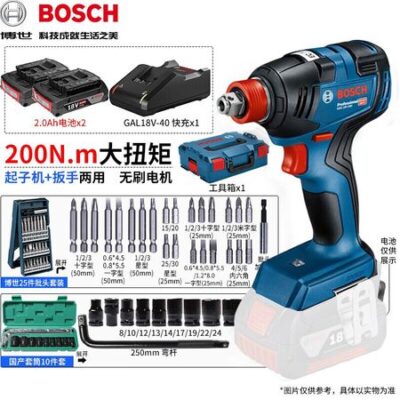 Гайковерт ударный Bosch GDX18V-200 + два аккумулятора 2.0Ah, зарядное устройство, два комплекта насадок