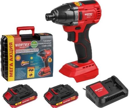 Аккум. ударный гайковерт WORTEX CWR 0118 в чем. с акб и з/у ALL1 МЕГА АКЦИЯ (18.0 В, БЕСЩЕТОЧНЫЙ, С АКБ И ЗУ, внутр. шестигр. 1/4 , 160 Нм, вес 1.1 (0329286)Модель имеет бесщеточный двигатель, что способствует повышенной устойчивости к нагрузкам, обеспечивает легкость инструмента, простоту в его обслуживании. Для точности в работе гайковерт оснащен панелью регулировки крутящего момента. Удобству пользователя способствует подсветка, обрезиненная рукоятка. Модель поставляется в комплекте с двумя аккумуляторами и зарядным устройством в надежном пластиковом кейсе.Характеристики:Напряжение аккумулятора: 18 ВТип аккумулятора: Li-ionТип двигателя: бесщеточныйЧисло оборотов холостого хода: 0-1100 об/минЧисло ударов в минуту: 0-2800 уд/минМаксимальный крутящий момент: 160 НмТип посадки: внутр. шестигранник, 1/4Вес (без аккумуляторной батареи): 1,1 кг Комплектация:инструкция по эксплуатации;смазка;ремешок;0329193 аккумулятор WORTEX CBL 1820-1 18.0 В, 2.0 А*ч, Li-Ion ALL1 — 2 шт.;0329180 зарядное устройство WORTEX FC 1515-1 ALL1 — 1 шт.;кейс