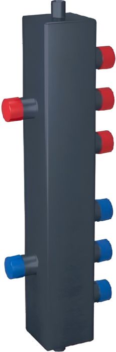 Гидравлический разделитель RISPA (РИСПА) ГРУ40-3В на три контура отопления. Установка такого изделия обеспечивает удобный монтаж и совместимость с различными типами радиаторов и систем отопления с теплоносителями до +110 градусов. Также нивелируется влияние нескольких контуров друг на друга, повышая эффективность работы.