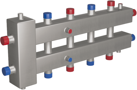 RISPA (РИСПА) ГРУ+КМГ 100-5ВУ НЕРЖ. это модель ГРУ, совмещенного в одной конструкции с коллектором. Он используется для установки в отопительных системах и служит для устранения разниц давления и температур в разноконтурных системах. Кроме того, он обеспечивает устранение воздействия контуров друг на друга. Имеет универсальное подключение потребителей: снизу, сверху и сбоку.