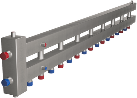 Обеспечение упрощения монтажа (расстояние между подающим и обратным отводами каждого потребителя, а также диаметры ориентированы на установку групп быстрого монтажа).