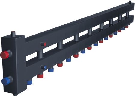 Обеспечение упрощения монтажа (расстояние между подающим и обратным отводами каждого потребителя, а также диаметры ориентированы на установку групп быстрого монтажа).