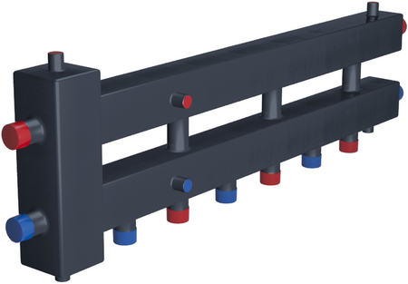 Обеспечение упрощения монтажа (расстояние между подающим и обратным отводами каждого потребителя, а также диаметры ориентированы на установку групп быстрого монтажа).