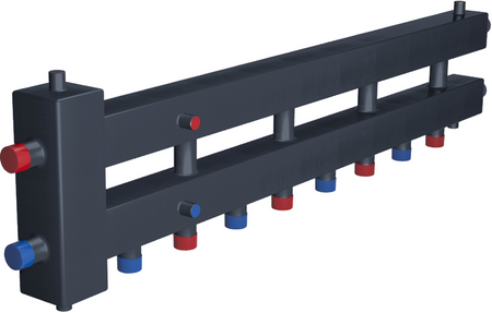 Обеспечение упрощения монтажа (расстояние между подающим и обратным отводами каждого потребителя, а также диаметры ориентированы на установку групп быстрого монтажа).
