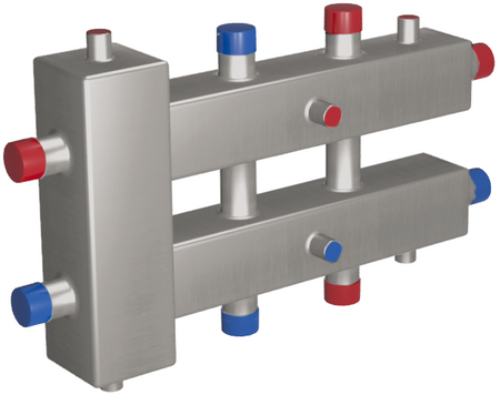 Коллектор с гидрострелкой модели RISPA (РИСПА) ГРУ+КМГ 60-3ВУ НЕРЖ. используется в многоконтурных отопительных системах. Данное устройство позволяет выровнять разницу температур/давления, а также распределить теплоноситель. Модель имеет универсальное подключение потребителей и горизонтальную установку.